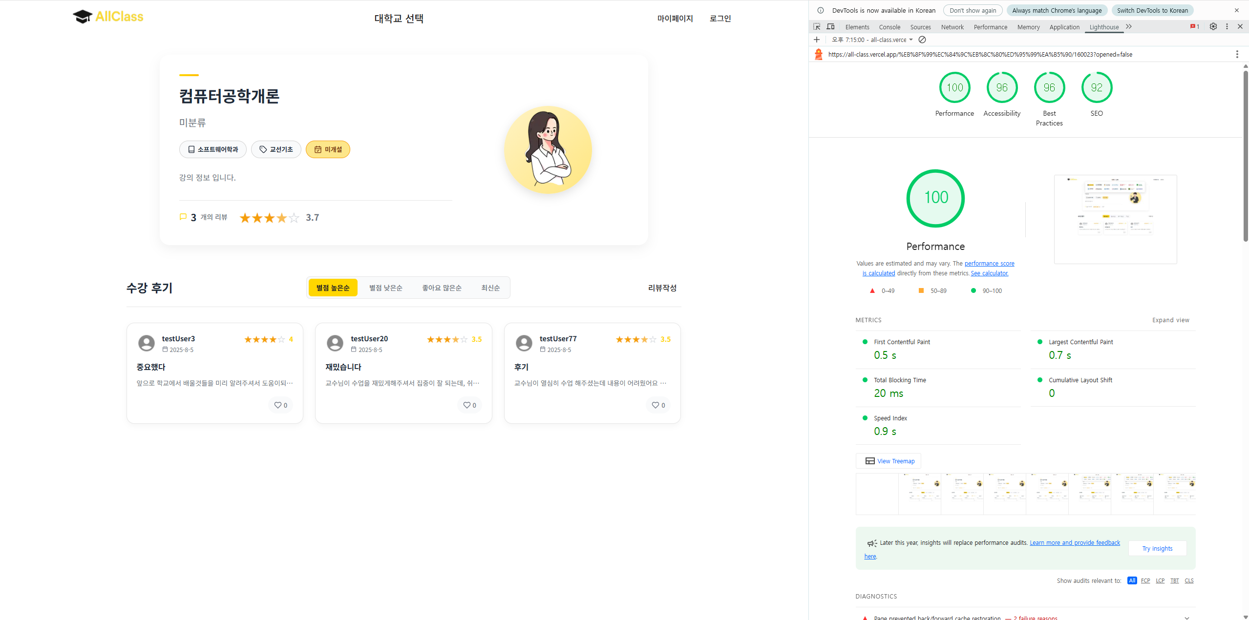 | Best Practices | 89 | 98 | +9점 |